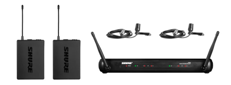包括SVX88雙通道分集接收機,2個CVL領夾式電容話筒2個,SVX1腰包發射機。