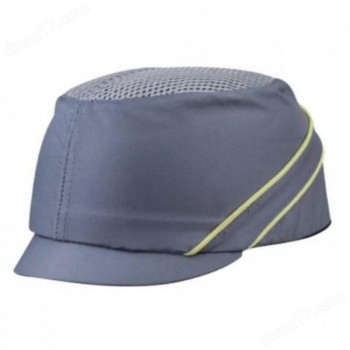 棒球帽形抗冲击安全帽;HDPE减震帽壳,防撞,不防护高空坠物,符合欧洲EN812标准;舒适轻盈,时尚简约,聚酯织物网状顶部,通风透气;聚丙烯内衬和舒适的EVA泡沫外壳吸收冲击;卡扣可调尺寸55/62厘米;短帽檐3厘米,适于室内使用,不会遮挡视线,工作中能保持较大的有效视野;适用于机械设备检修,汽车工业等狭窄环境需要头部撞击防护的作业;外壳:聚氨酯涂层的聚酰胺或聚酯;内侧箍环:聚丙烯;