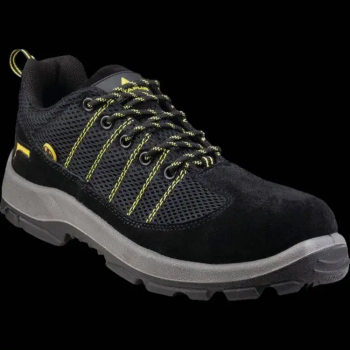 低帮毛面牛皮保护包头和防刺穿中底安全鞋,鞋面:毛面牛皮、聚酯纤维,衬里:聚酯纤维网眼,鞋垫:可脱卸的聚酯纤维&EVA材料,鞋底:双密度PU注塑;