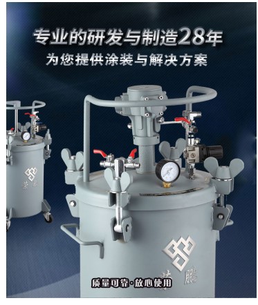 伴随着气动压力桶行业的蓬勃发展,气动压力桶的应用目前已经非常的广泛,市场越来越细化,种类也越来越多。使用过喷胶压力桶的人都知道喷胶机配备有压力桶,压力桶内通入气体以施加压力,进而使胶液喷出。荣鹏气动喷胶压力桶分为自动和手动型,可以配接压送式喷枪R71。