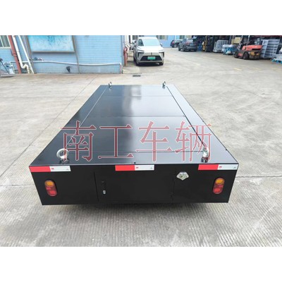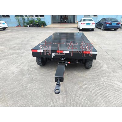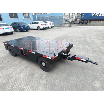 3吨电动手动牵引两用平板拖车 黑色南工车辆长期非标订制,两用平板拖车属自走式电动底盘,同时兼备自走牵引两种功能,非自动行走时可牵引拖行,外观精美,操作简单!
