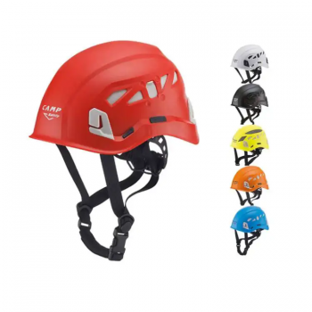 CAMP坎普ARESPRO 0748高空作业救援安全头盔,一款集舒适性、功能性和安全性于一体的头盔,外壳ABS和聚碳酸酯材质混合生成;外壳透气孔设计为关开系统,可根据使用要求闭合或打开;内衬选用要吸收冲击力的高密度EPS发泡材料***头部舒适度;内织带悬架系统适合不同头型且体贴舒适;下额带连接带拉力50kg;可调节尺寸54-62cm,重量:470g。认证标准:CE EN397+EN 12492+EAC